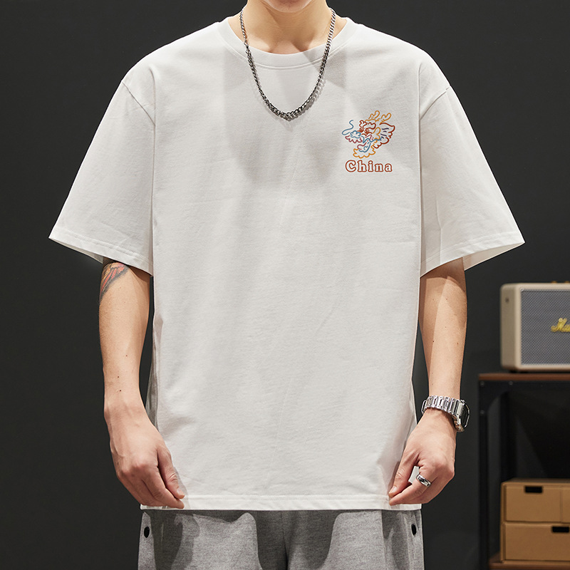 夏の潮牌重ポンド260g純綿ゆるいtシャツ男性半袖プリント丸襟ファッションカジュアルtシャツ男性服