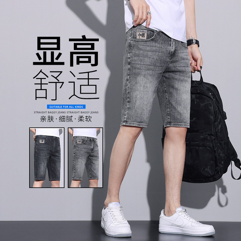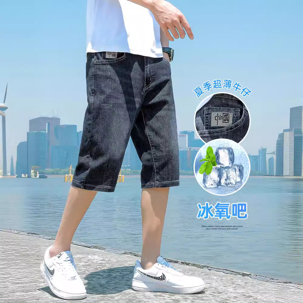 デニムの半ズボンの男性の夏の薄いタイプのファッションブランドのゆったりとしたカジュアルな5分のズボンの2024新型の弾力性の通気性の中のズボン