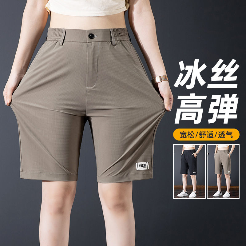 氷糸半ズボン男性夏薄手2024新型ビーチ速乾中ズボン夏工装五分カジュアルズボン