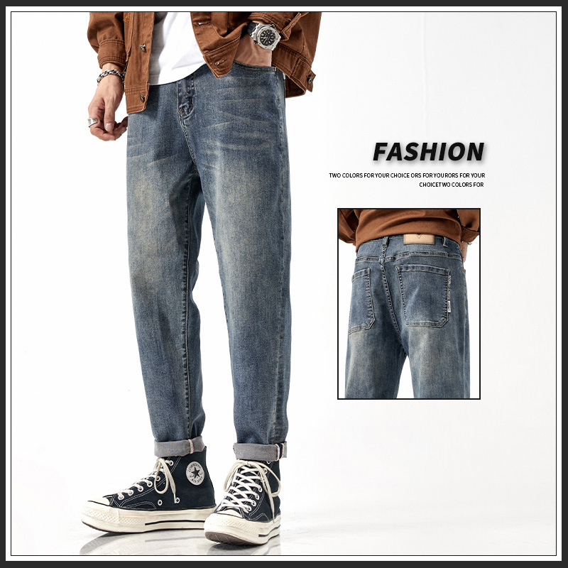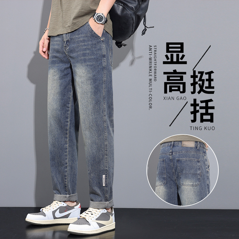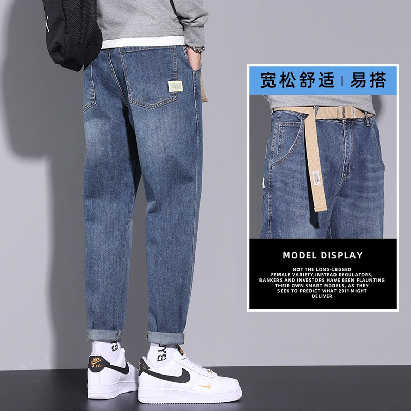 ジーパンの男性2024年と秋の新型のゆるいストレートのハーレムのズボンの潮流のアメリカのカジュアルな9分のズボンの男子学生