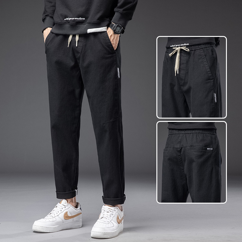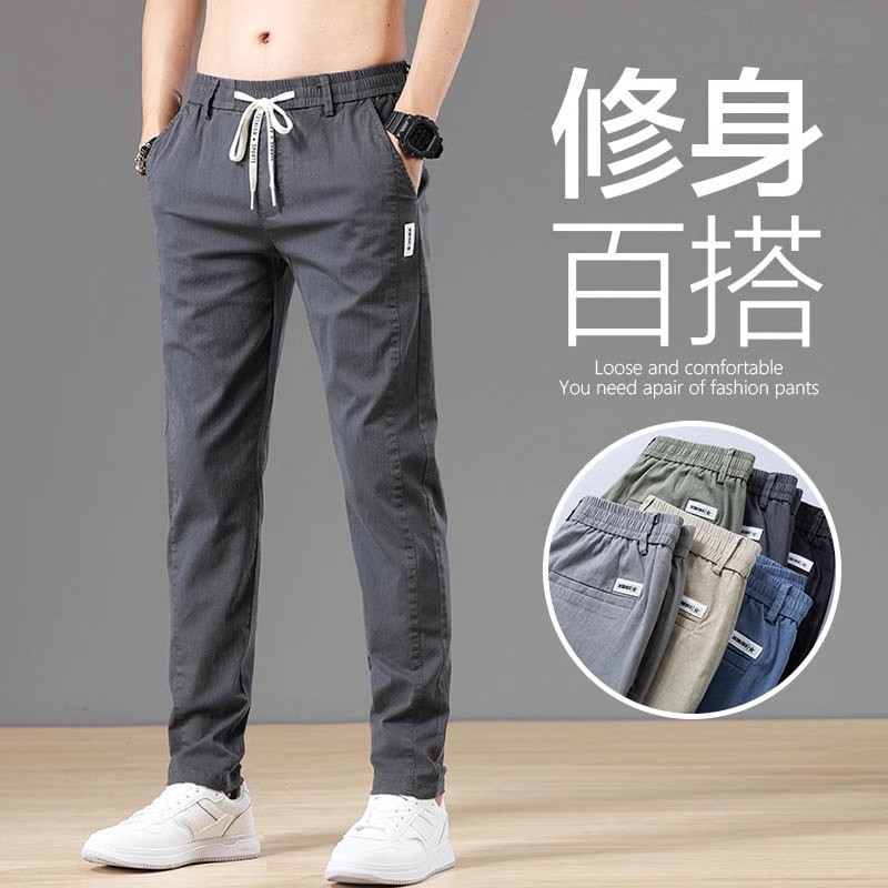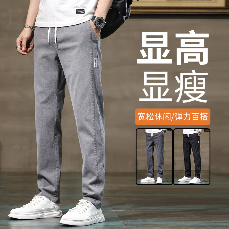 カジュアルパンツ男子2024春秋新作百合修身直筒夏仕事運動長ズボン男子