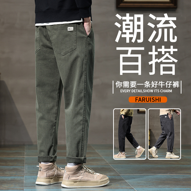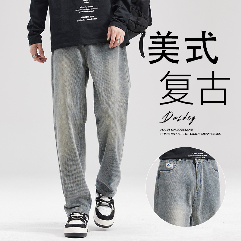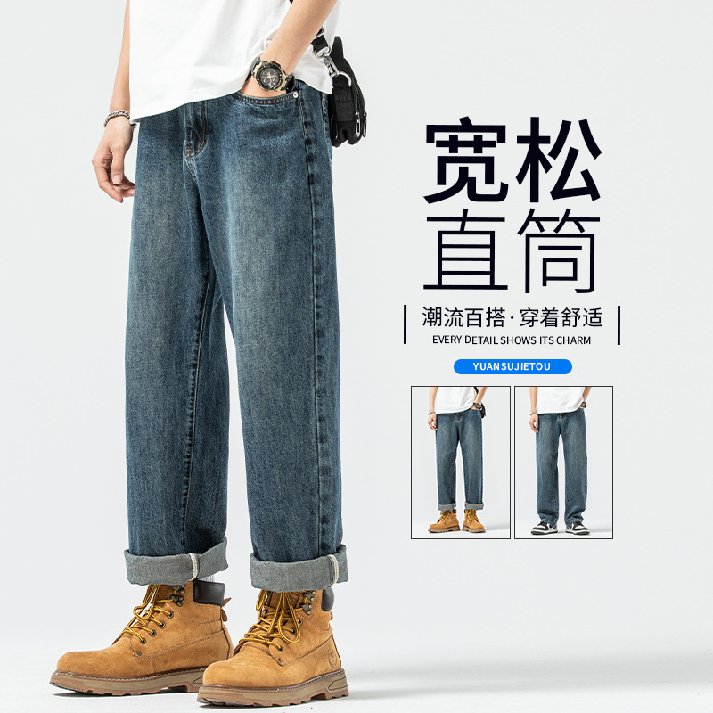 ジーンズ男性春秋新作ファッション行カジュアルレトロゆるいストレートズボン男性百合ファッションズボン