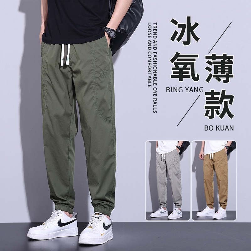 夏の薄いタイプの男性の工装のズボンのゆったりした束の足のカジュアルなズボンの百合の長いズボンのファッションのブランドの男性のスポーツのズボンの新型