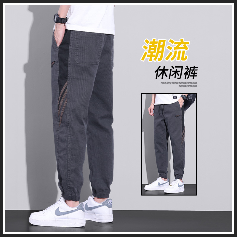 カジュアルパンツ男性春夏ゆるいストレート2024新型スポーツファッションブランドの秋男子九分長ズボン