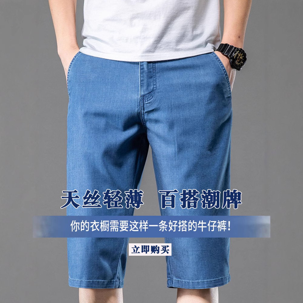 七分ジーパン男の夏のゆったりした直筒天糸超薄型のズボンの半分の中のズボンの78分のカジュアルな短いズボン