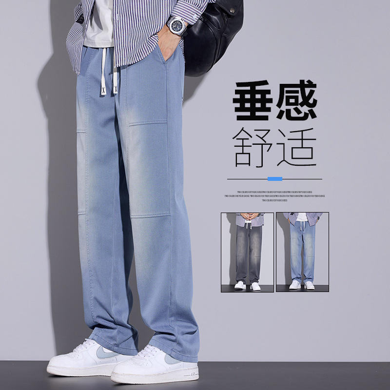 夏の薄いジーンズ男性2025新型ゆるいストレートアメリカのファッションブランドの高級弾力カジュアルなズボン