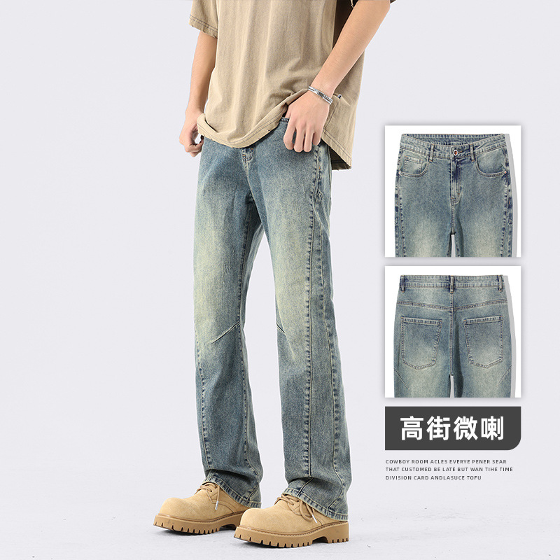 2025年春季新商品青少年マイクロラップジーンズ男性ズボンアメリカレトロ流行ズボン男性カジュアル