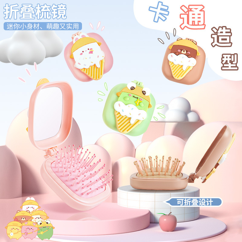 化粧品子供かわいい折り畳み鏡櫛セット携帯子供卸売り櫛鏡櫛エアマットかわいい櫛