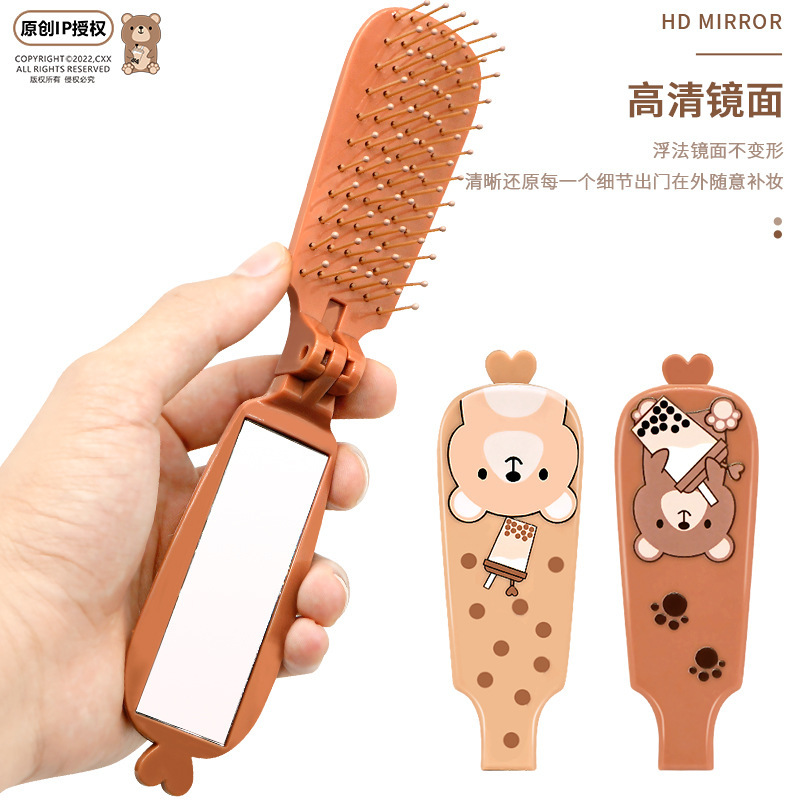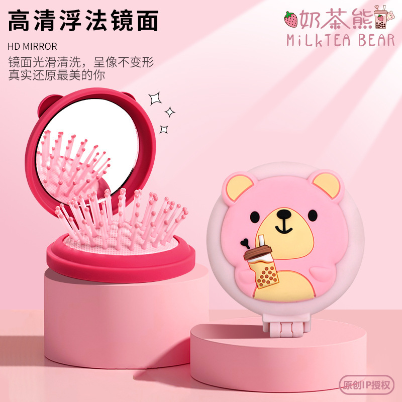 オリジナルipミルクティー熊かわいい折り畳み櫛小アンドロメダ化粧鏡携帯エアクッションマッサージ櫛漫画エアバッグ