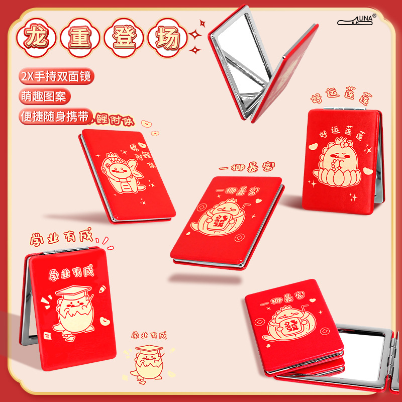 リナ折り畳み化粧鏡龍年限定新型ファッション化粧セット卸売り小鏡手持ちミニ鏡