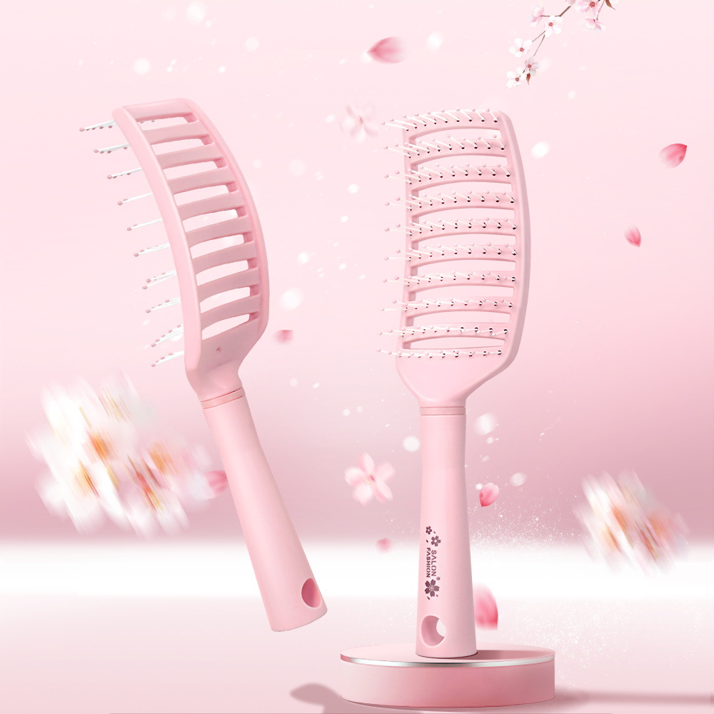 マカロンの大きい曲がった櫛の頭の皮のマッサージは男性のふわふわしている櫛のカールの形の櫛の弧の形の9排骨櫛の卸売りをします。