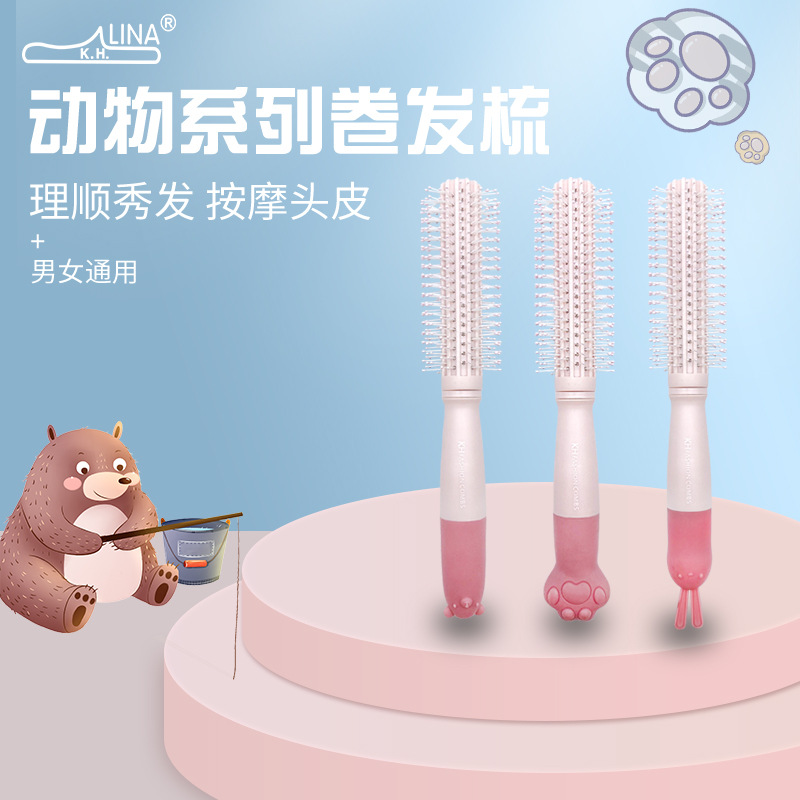リナの漫画の動物のシリーズの巻き櫛のかわいい取っ手のマッサージの美容院の櫛の日常の形の1櫛はすぐ順です。