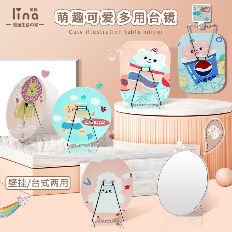 立体アニメ木製デスクトップ化粧鏡高精細化粧鏡寮デスクトップは携帯シンプル化粧鏡を立てることができます。