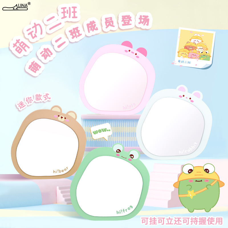 リナ萌動二組の小さいサイズのアニメのデスクトップの化粧鏡のミニの掛け式の両用の学生の寮の金属の鉄の鏡