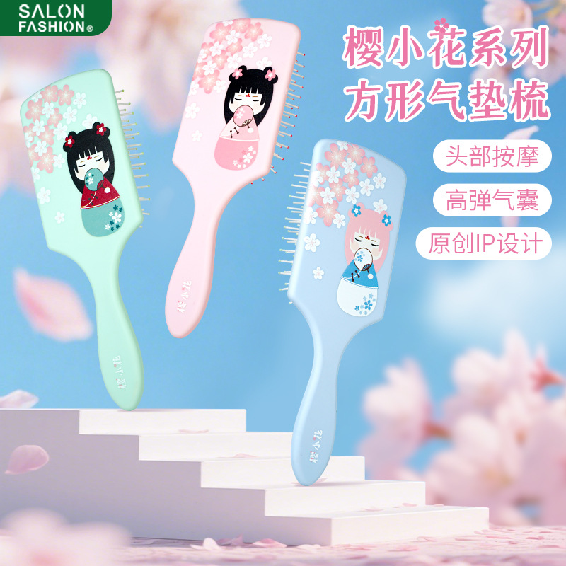 女の子向けの大きな四角いエアバッグコーム、見栄えの良いエアクッションマッサージコーム、家庭用ヘアスムージングと耐久性のあるメーカー卸売