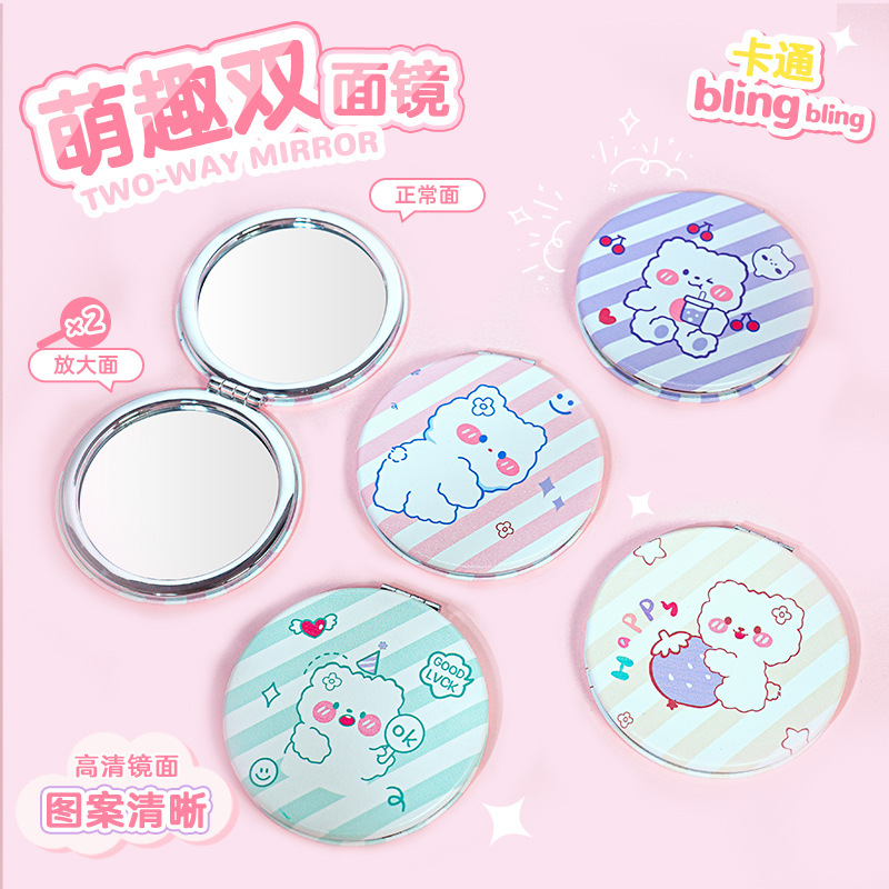 ポータブル折りたたみクマかわいい円形パターンいつでも持ち運べる化粧鏡円形クリエイティブ学生