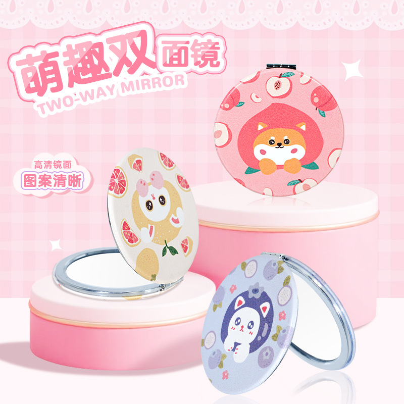 Lina ポータブル化粧鏡 学生用 かわいい動物柄 丸型 小型レザーミラー 機内持ち込み 折りたたみ化粧両面