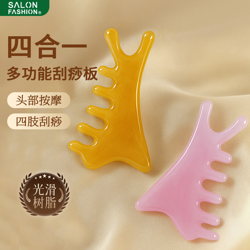 樹脂経絡コーム、鹿の角、頭のツボマッサージ、スクレーピング、ケアと健康、コンパクト、ポータブル、耐久性