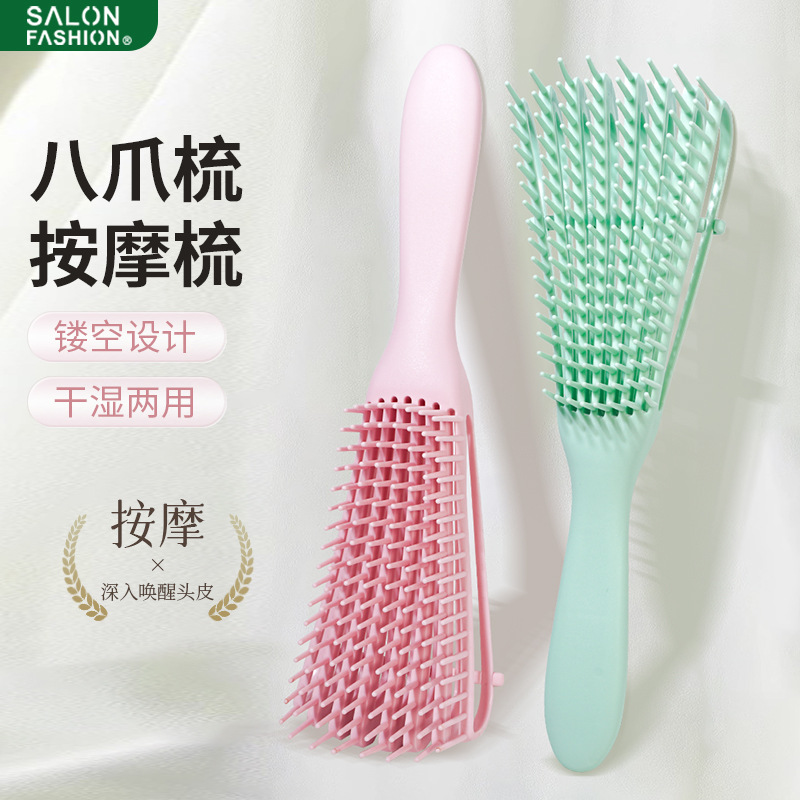 国境を越えた売れ筋の女性用8本爪コーム、ウェット&ドライの両用ヘアブラシ、家庭用ストレートヘアとカーリーヘアスタイリングコーム