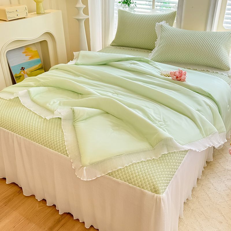 クラスAアイスビーンマットサマーキルト4点セット洗濯機で洗える韓国風レースベッドスカートアイスシルクマットエアコン付きソフトマット