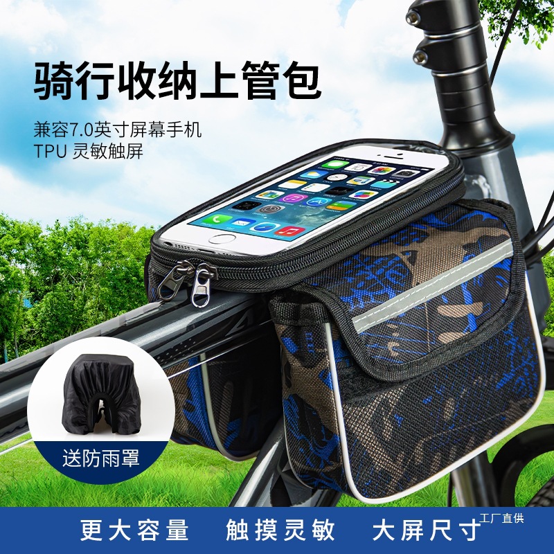 自転車のカバンの前の梁のカバンの防水のマウンテンバイクの前のカバンは携帯電話のカバンの自転車の横の梁のカバンの上で展示します。