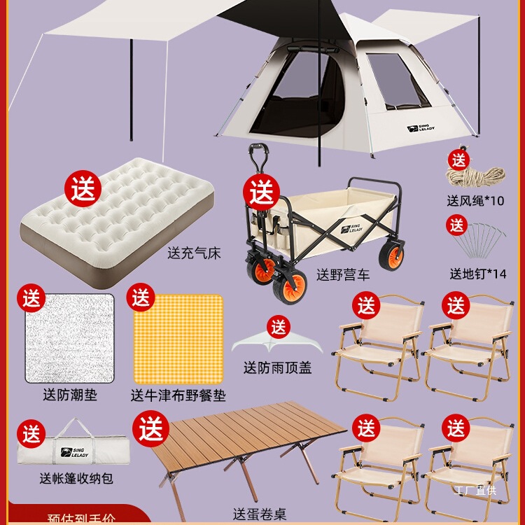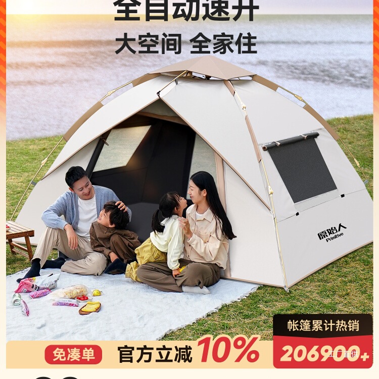 原始テント屋外ポータブル折りたたみキャンプ用品フルセットキャンプ一晩自動クイックオープン防雨展示