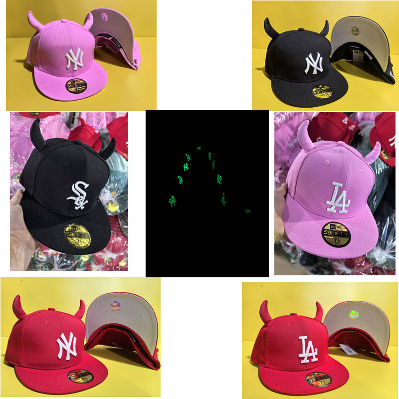 AAAA 新製品蛍光カーフホーン悪魔文字調節不可能な大きな頭囲男性と女性のジェンダーレススタイルヒップホップ帽子