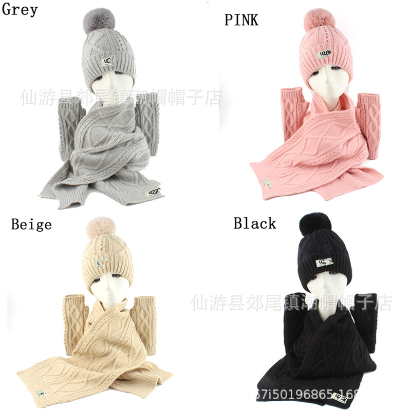 外国貿易秋冬マフラー帽子手袋三点セット菱格麻花ニットベルベット保温毛球帽成人