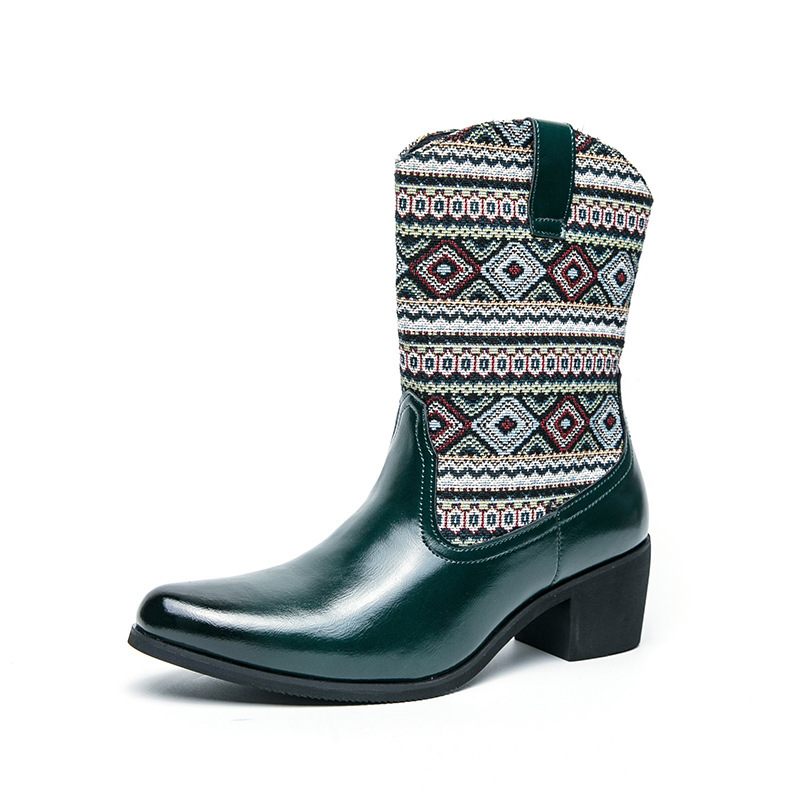 西部カウボーイブーツ男秋通気先ショートブーツ英倫風高組靴中Genuine Leather