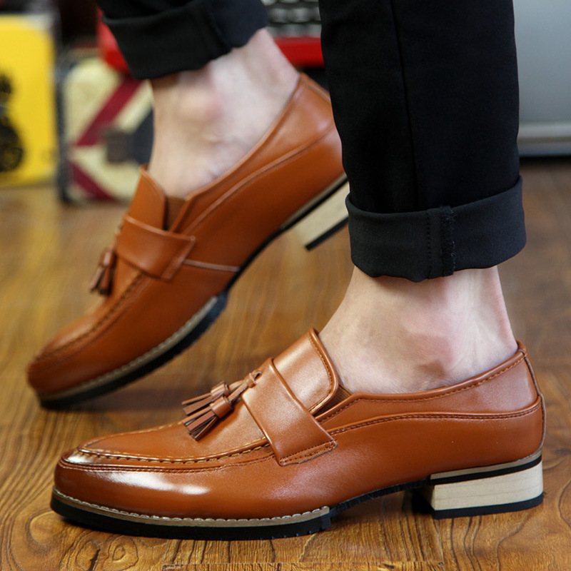 メンズシューズクロスボーダーメンズ革靴2025フリンジ靴革靴先一足ローファー靴青The New