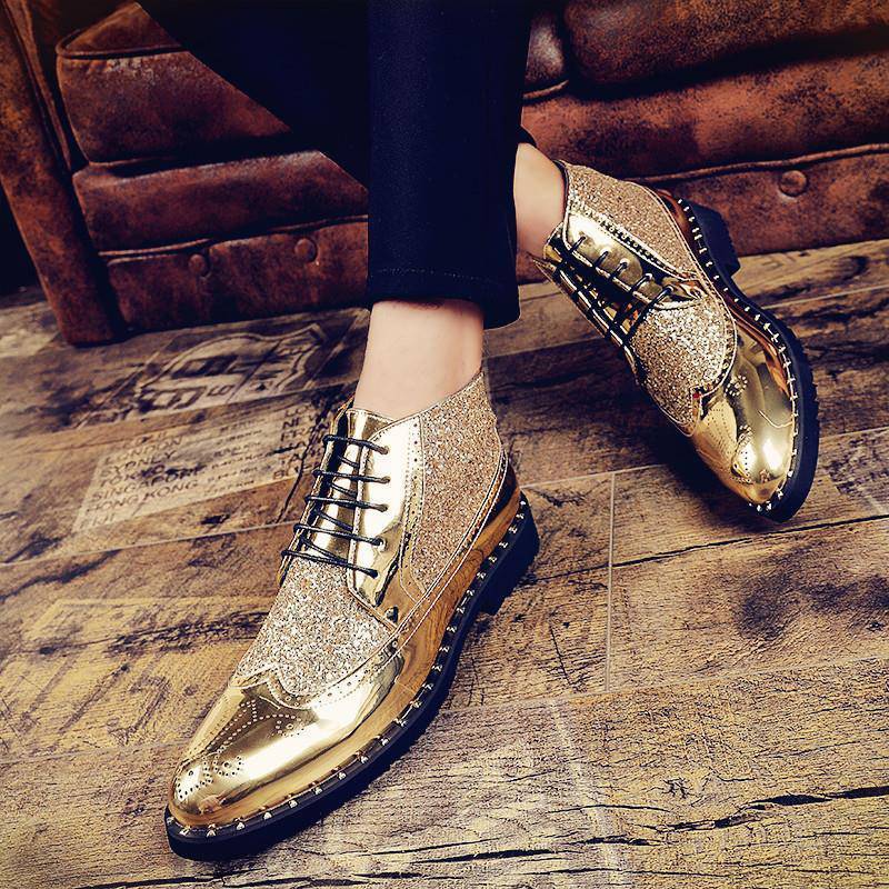 メンズシューズハイトップカジュアル革靴夜店ヘアスタイリストファッション靴エナメル光沢面ミラーThe New