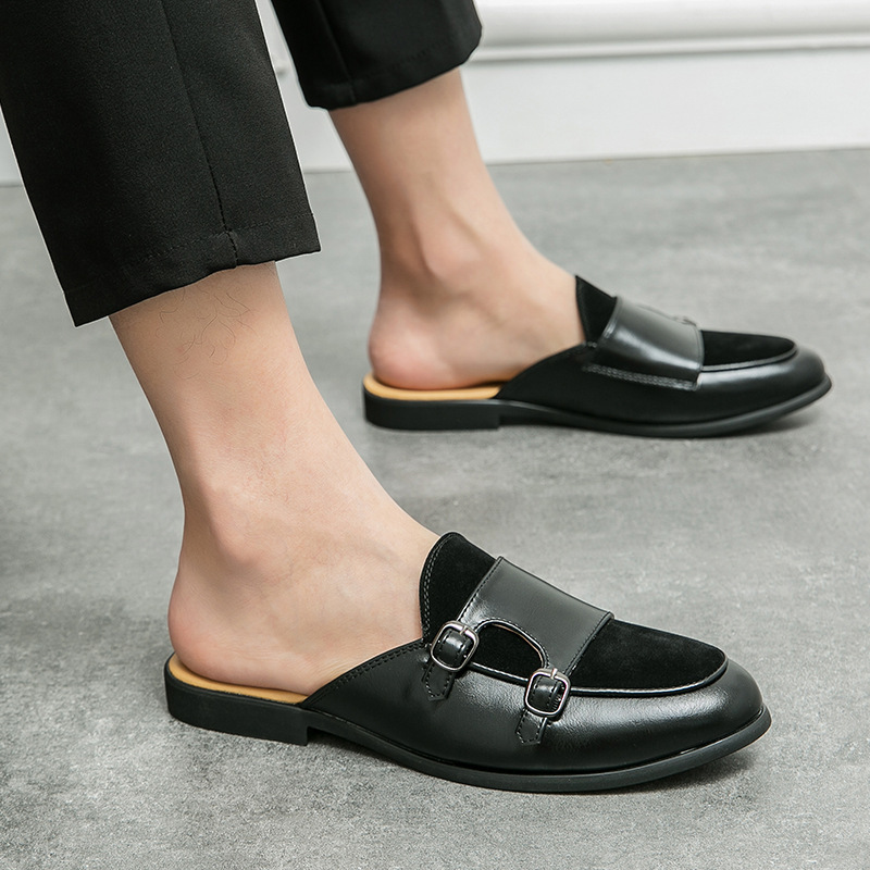 Men shoes試着室の包頭半引き豆靴の色合わせ靴男2025夏の新型男The New