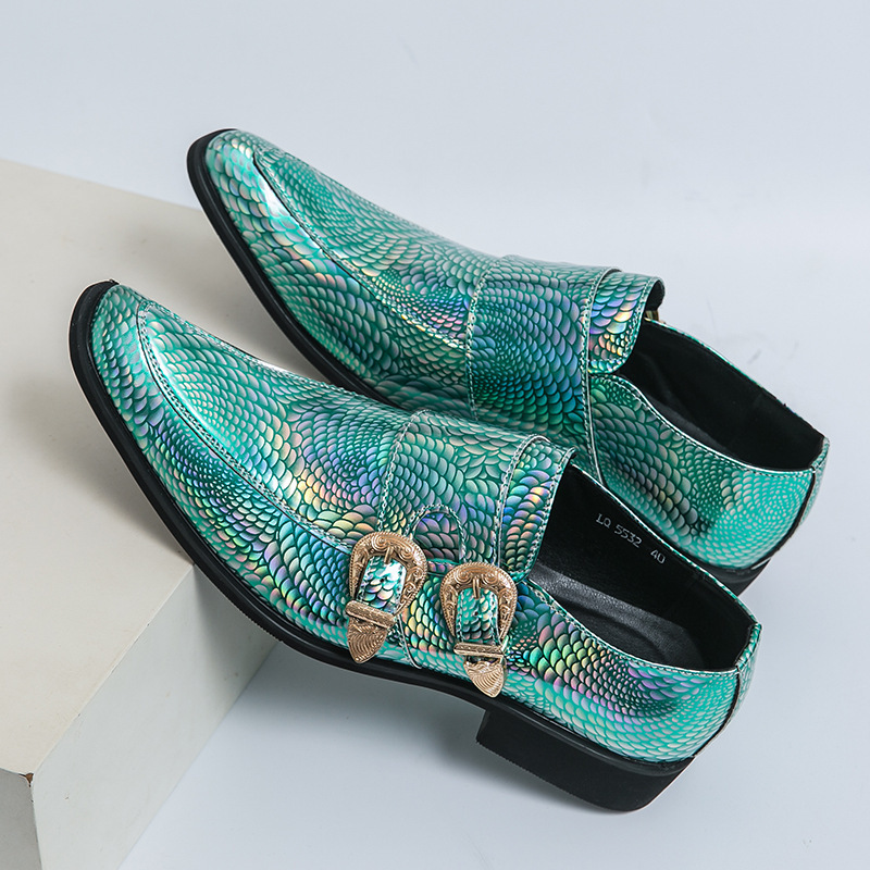 Men shoes 2025年春クロスボーダー韓国風ビジネス革靴メンズファッションファッションカジュアルシューズ青The New