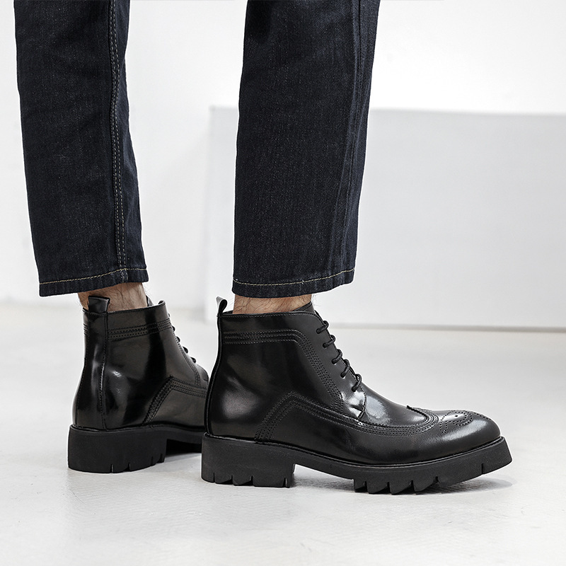 Large size47ハイウエストチェルシーブーツ男靴革靴38-46コード英倫中Genuine Leather