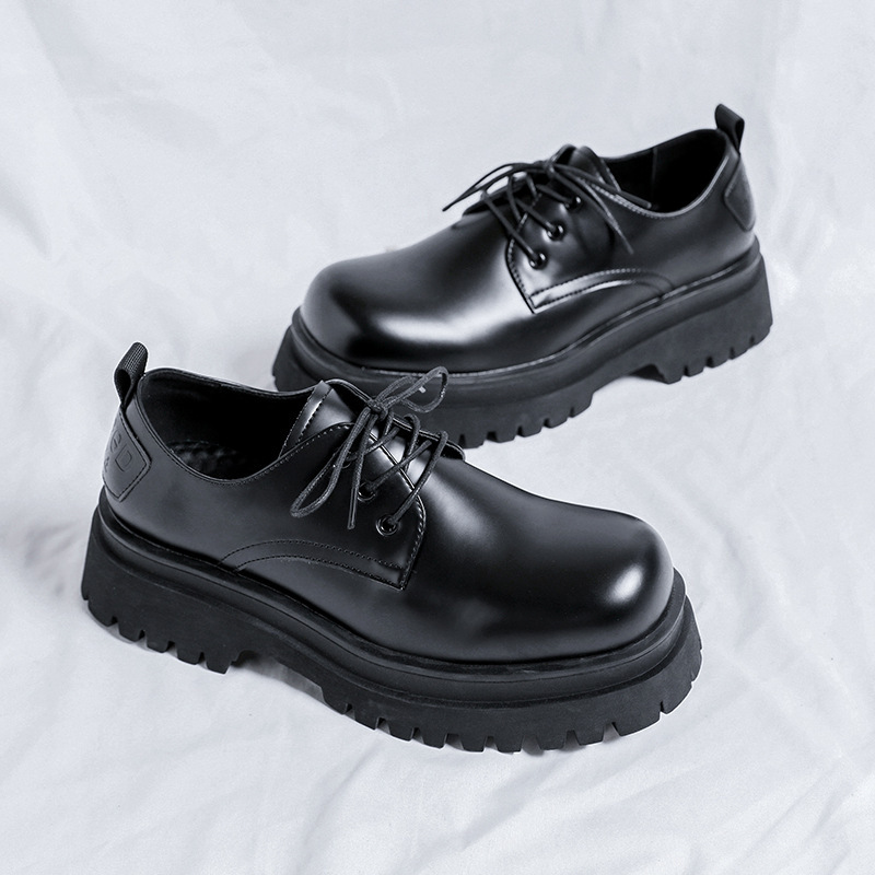 Large size47厚い底リトルダービー革靴マット高级感ラウンドトゥ靴Genuine Leather