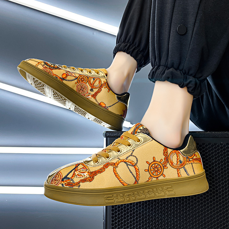 スポーツシューズヨーロッパ駅の男性靴の美人の頭を上げて、プリントの白い靴のファッションを合わせます。