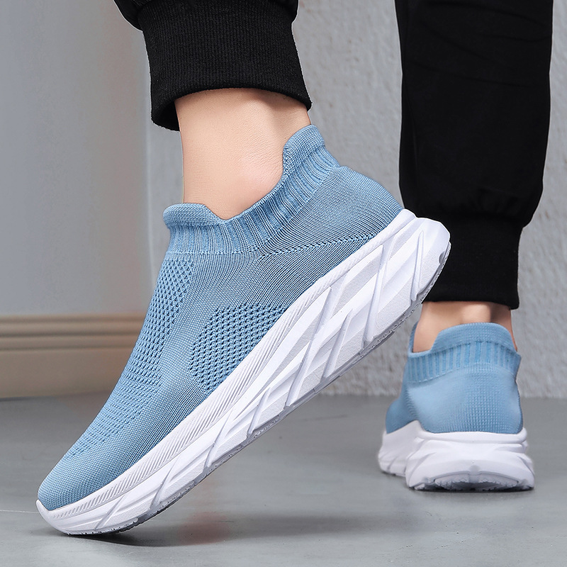 新しいメンズクロスボーダーラージサイズフライウーブンカジュアルスポーツシューズスリッポンソフトソールウォーキングシューズ厚底サポートドロップシッピング