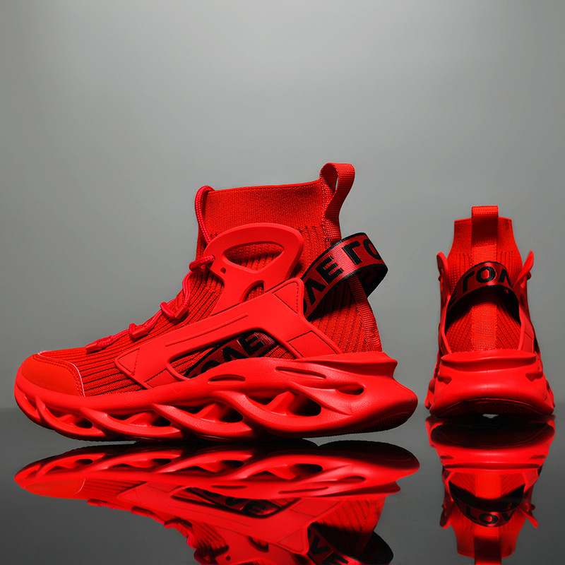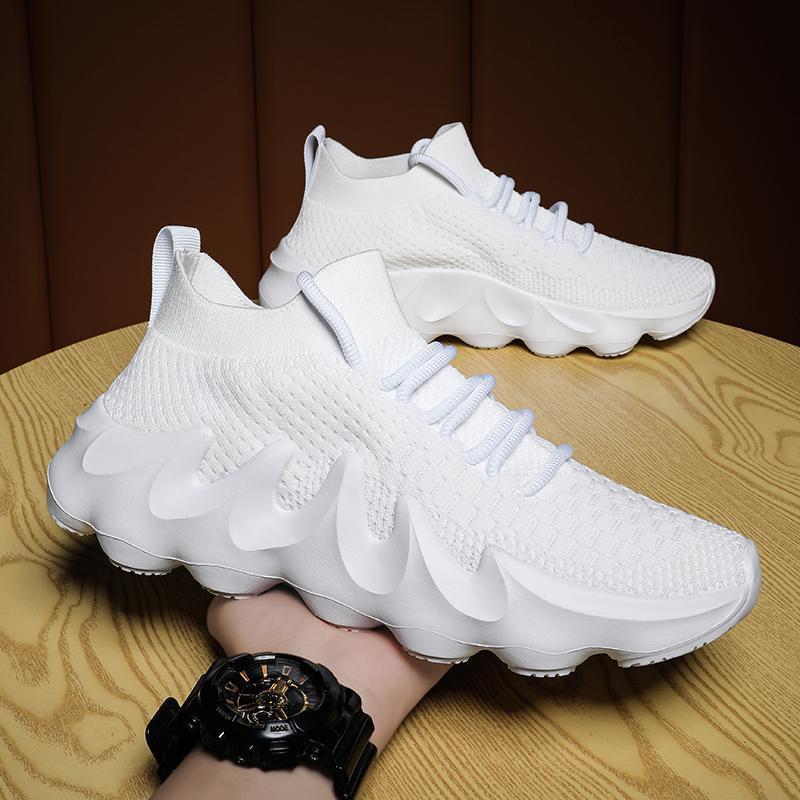 メーカー直販メンズハイトップスポーツシューズ、大きいサイズのフライニットシューズ、通気性サポート、卸売ドロップシッピング、トレンディなカジュアルスタイル