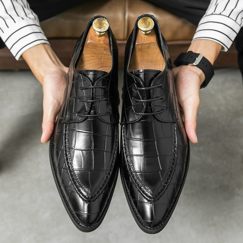 Large size47春夏ワニ紋革靴男先先ビジネス英倫韓Genuine Leather