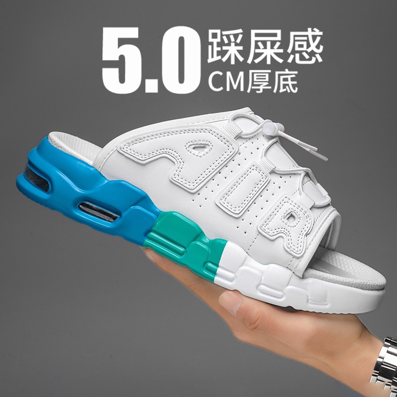 サンダルの夏の新型メンズの厚い底のエアクッションのカジュアルなスリッパのアウトドアのクロスボーダーのファッションの涼しさは字を引きずって青いです。