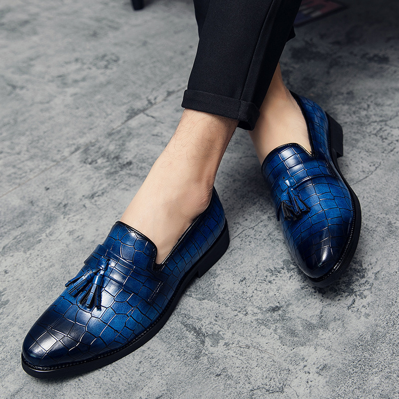 ヘアスタイリストのフリンジの先の小さい革靴は足のカジュアルな革靴のクラブの男性をかぶせます。