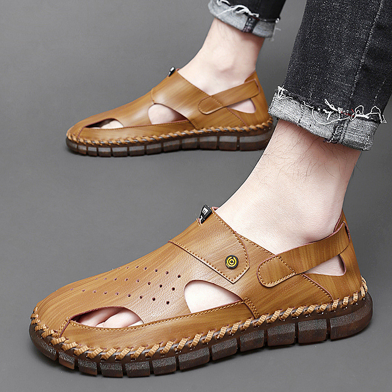 サンダルクロスボーダー大きいサイズ包頭サンダル男潮夏滑り止め透かし彫りカジュアル革靴ソフト底サンダル男怠け者