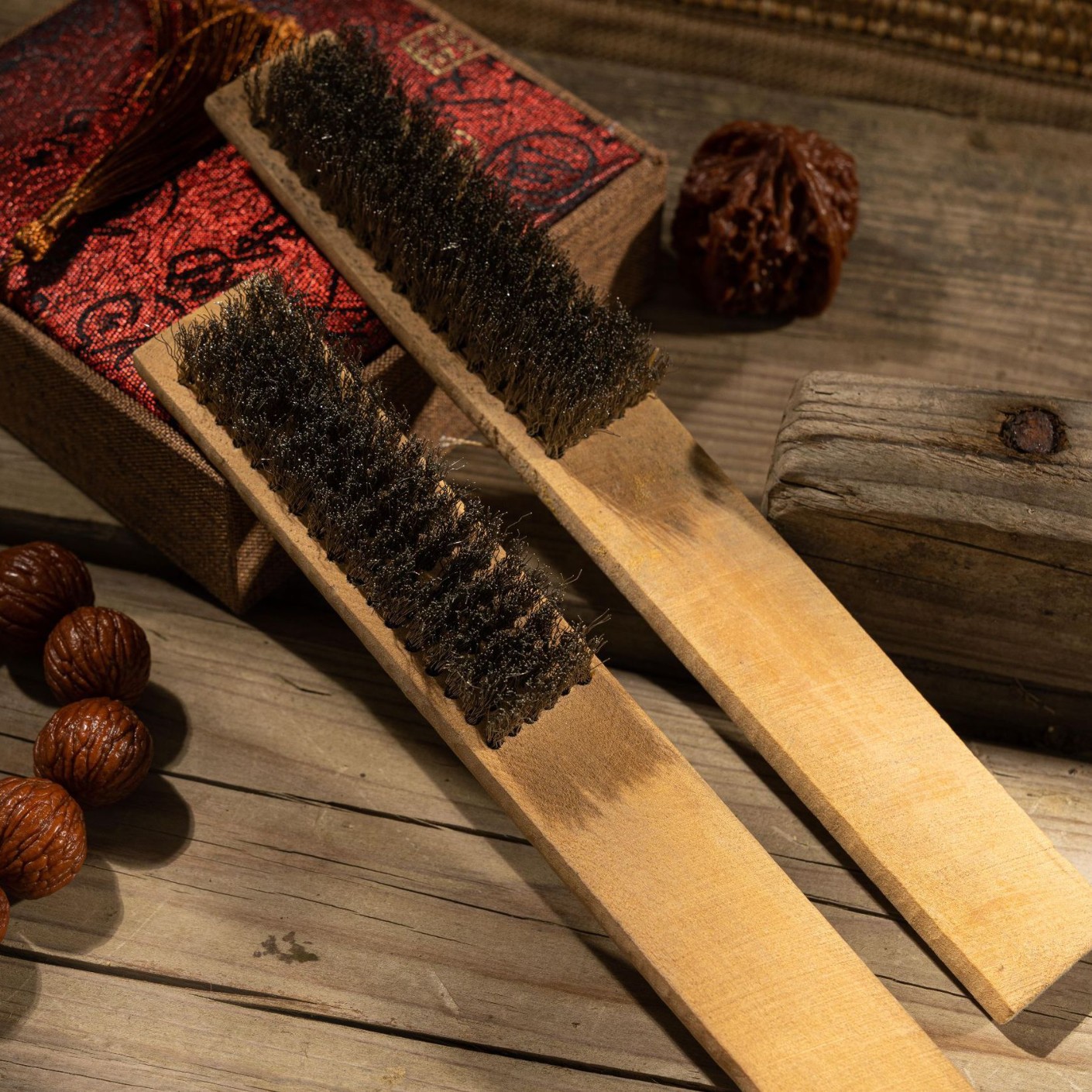 竹の柄の文はクルミの金剛のオリーブをこすって清潔なブラシの文を遊んでほこりを取り除きます。