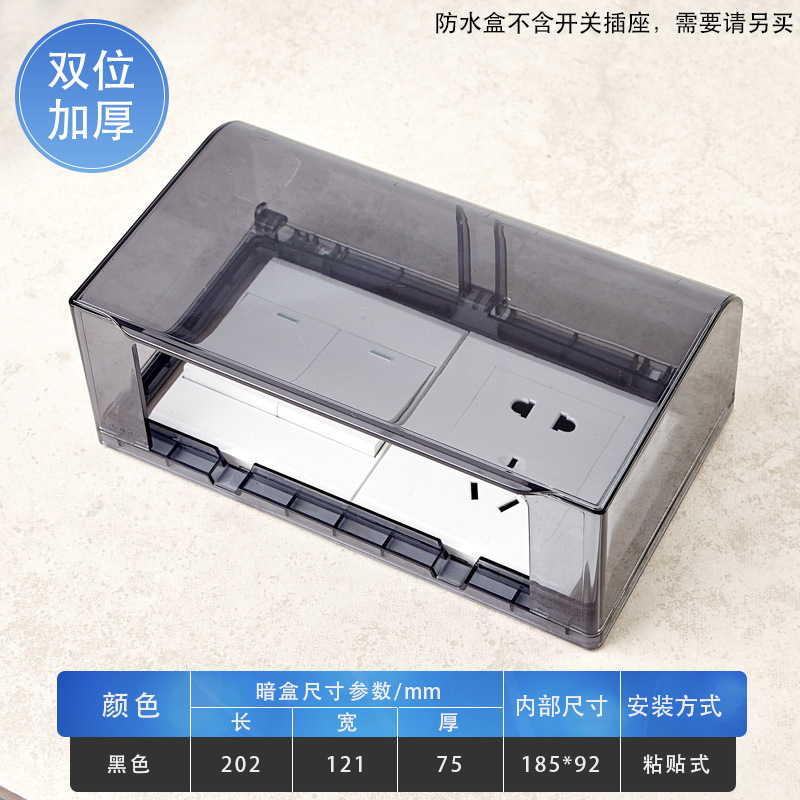 二位連高厚さ86型貼り付け式水しぶき防止ボックス浴室給湯器スイッチコンセント黒色暗装保護