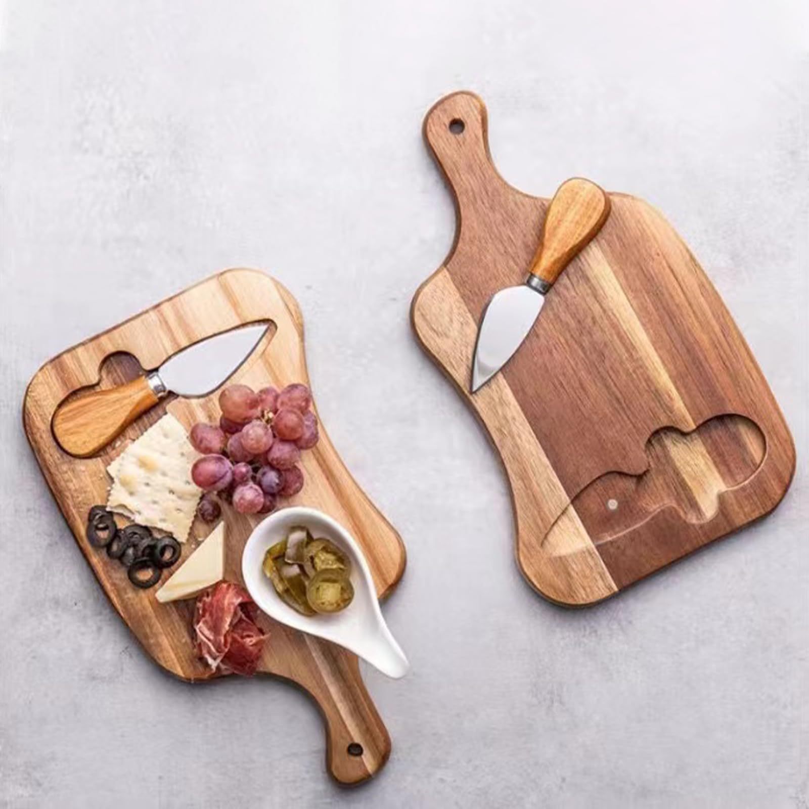国境を越えたアカシアのまな板まな板まな板木製チーズ板ハンドル付き木製熟食板パドルチーズ板