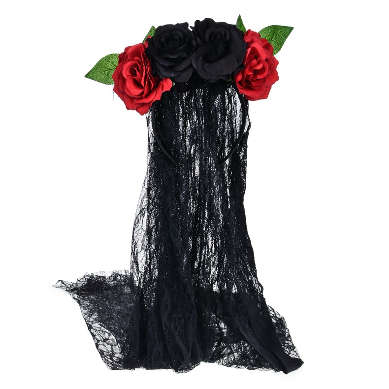 ハロウィンフラワーヘッドバンド、ヨーロッパとアメリカの黒バラの花輪ヘアアクセサリー、花嫁のレースのベール、工場直販、レトロ