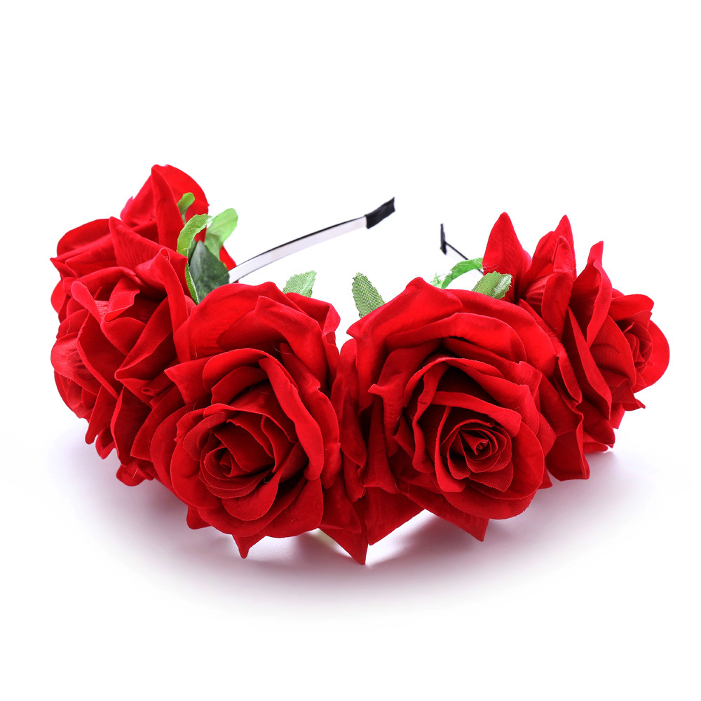 11cm赤いベルベットのバラのカチューシャ手作りの模造花の頭飾り結婚祝いの髪飾りの頭飾り卸売り