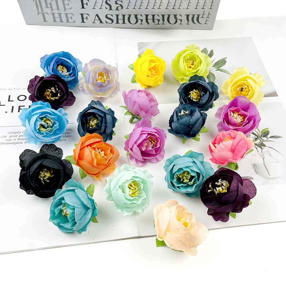 シルクフラワーローズヘッド DIY 手作り小さな花結婚式のシュガーボックスの装飾造花家の装飾