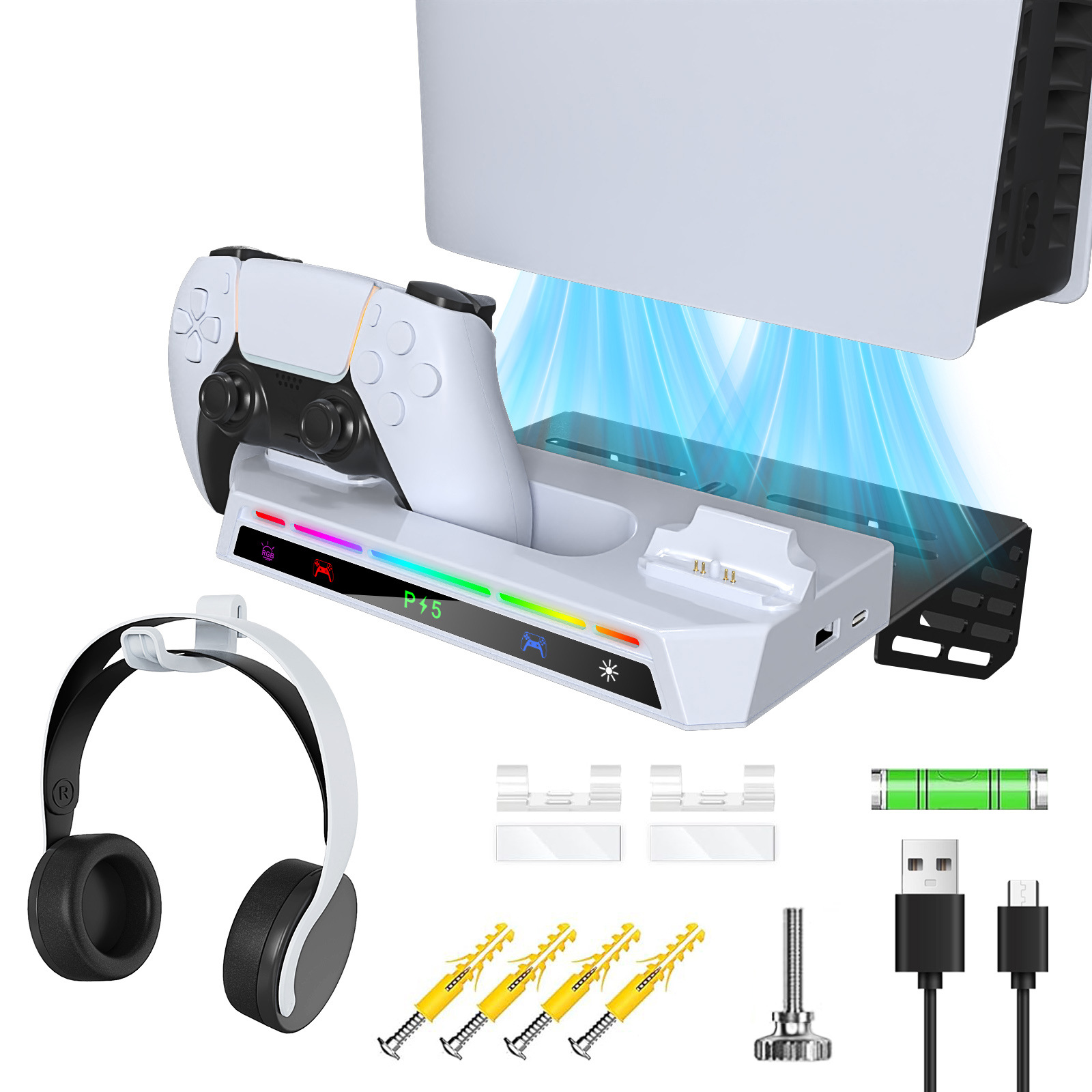 P5 slim本体放熱ベースRGB多彩な雰囲気ランプリングP5ゲームハンドル付きスタンド充電収納ベース