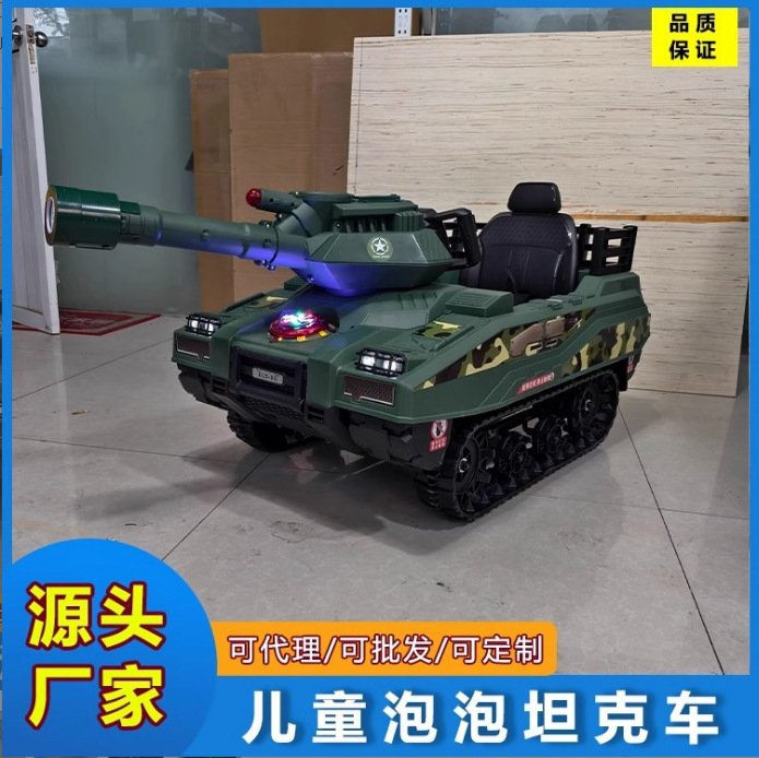 新しい戦車子供たちが電動バブルカーを共有し、おもちゃのクローラー広場の屋台のオフロード戦車に座ることができます